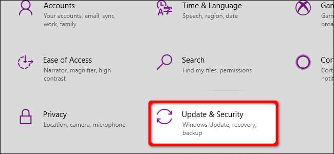 Cliquez sur la vignette «Mise à jour et sécurité».