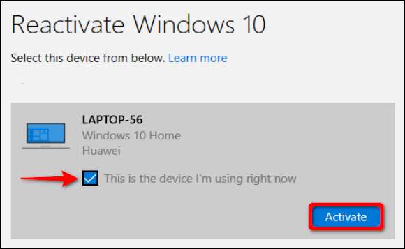 Entrez les informations d'identification de votre compte Microsoft et sélectionnez le bouton «Connexion». Vous verrez une liste de vos appareils. Sélectionnez l'appareil avec le matériel modifié et cochez la case "Ceci est l'appareil que j'utilise actuellement".