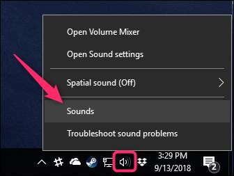 Pour l'utiliser, cliquez avec le bouton droit sur l'icône du volume dans la barre d'état système, puis cliquez sur la commande «Sons».