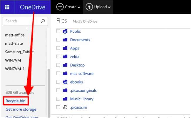 Microsoft’s OneDrive déplace également les fichiers supprimés au lieu de les supprimer. Conformément au thème de Windows, les fichiers supprimés se trouvent dans la «Corbeille».