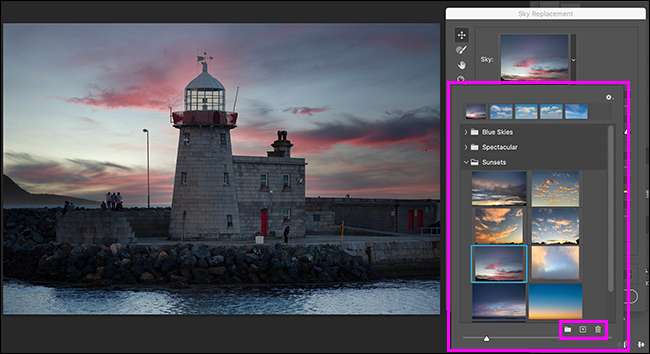 Si vous cliquez sur Modifier & GT; Remplacement du ciel, vous êtes dans l'outil de remplacement du ciel. La majeure partie de la levée abondante est effectuée par les algorithmes d'apprentissage AI / machines d'Adobe (appelé sensei), mais il reste encore quelques options pour décomposer ici.