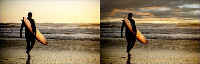 - Dans la troisième image, la position du soleil s'est déplacée beaucoup plus bas et à gauche. Cela signifie que l'éclairage dramatique sur le surfeur et son conseil d'administration est en désaccord avec la direction de la lumière.