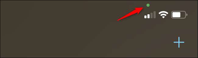 Si vous courez iOS 14 et up, vous pouvez Dites facilement quand une application utilise la caméra intégrée de votre iPhone . Il suffit de regarder dans le coin supérieur droit de votre écran à la barre d'état: si vous voyez un point vert là-bas, une application utilise l'appareil photo. (S'il y a un point orange, cela signifie que votre microphone est utilisé.)