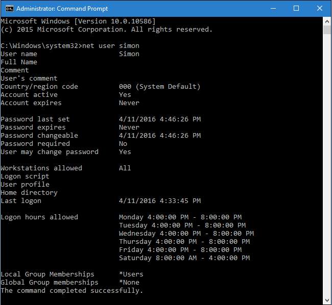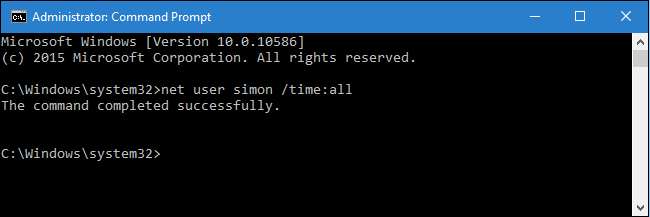 Et c'est tout. Vous n'êtes pas obligé d'utiliser le contrôle parental ou les comptes Microsoft pour définir des limites de temps pour les utilisateurs. Vous venez de passer quelques minutes dans l'invite de commande.