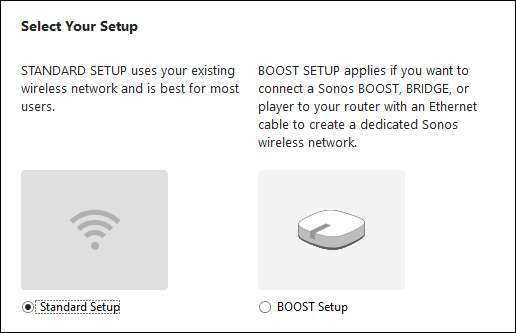 Nous n'utilisons aucun autre produit Sonos pour configurer notre haut-parleur, nous allons donc sélectionner «Configuration standard».