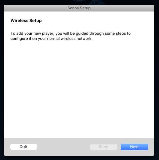 Si vous disposez du Wi-Fi, comme nous le faisons sur notre Mac, il lancera automatiquement la routine de configuration sans fil. Vous ne devez vous connecter au lecteur Sonos via Ethernet que si vous ne disposez pas de capacités Wi-Fi sur votre ordinateur.