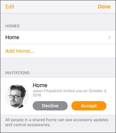 Ne vous inquiétez pas s'ils manquent la notification, ils peuvent tout aussi facilement ouvrir l'application Accueil et appuyer sur la même icône Paramètres que nous avons utilisée pour envoyer l'invitation en premier lieu. Une fois qu'ils ont cliqué sur la notification ou sur l'icône des paramètres, ils seront invités à accepter l'invitation.