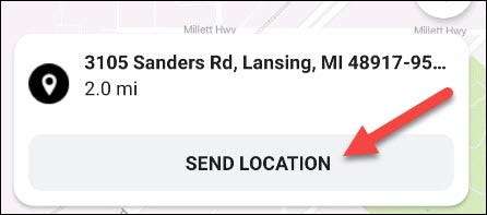 Maintenant, vous pouvez déplacer la carte autour de la carte et appuyez sur "Envoyer l'emplacement" lorsque la broche se trouve à l'endroit que vous souhaitez partager.