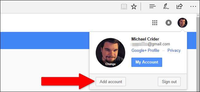 Une fois que vous y êtes, cliquez sur la photo de profil de votre compte dans le coin supérieur droit de la page. Si vous n'avez pas attribué de photo de profil, il s'agira d'une icône circulaire avec la première lettre de votre prénom. Dans le menu qui apparaît, cliquez sur "Ajouter un compte".