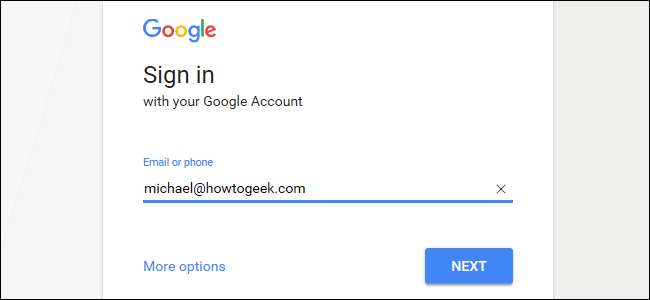 Pour commencer, connectez-vous simplement à votre compte Google principal (qui est probablement l'adresse Gmail que vous utilisez pour votre messagerie personnelle). L'interface a été mise à jour en mai 2017, mais elle reste assez simple. La page de connexion est accounts.google.com , mais accéder à n'importe quel service Google personnalisé vous permettra de vous connecter de la même manière.