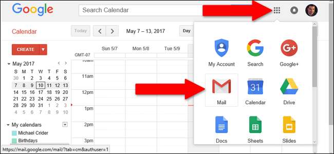 Pour gagner du temps, vous pouvez également ouvrir de nouveaux services Google avec un lien direct. Lorsque votre compte secondaire est actif sur n'importe quelle page Google, cliquez sur le bouton "Applications" dans le coin supérieur droit (il s'agit de la grille à neuf points).