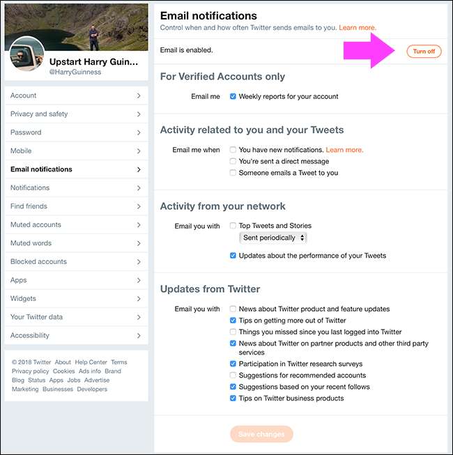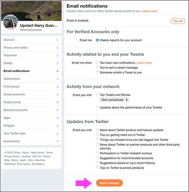Désormais, vous ne recevrez que les e-mails que vous avez laissés activés, du moins jusqu'à ce que Twitter introduit un autre nouveau type de notification. Prévoyez de vérifier et de désactiver à nouveau les choses de temps en temps.