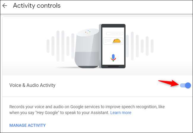 Pour ce faire, visitez le Contrôles d'activité page de votre compte Google. Localisez «Activité vocale et audio» ici. Pour empêcher Google de stocker de nouveaux enregistrements vocaux, désactivez cette option. Cette collection «Suspend» jusqu'à ce que vous réactiviez cette option.