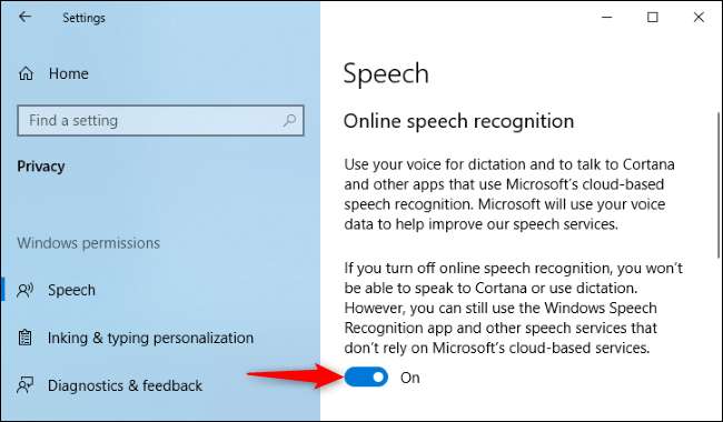 Pour Cortana, vous pouvez au moins arrêter l'examen humain de vos commandes vocales et conversations Cortana. Pour ce faire à partir d'un PC Windows 10, accédez à Paramètres> Confidentialité> Parole. Désactivez ici l'option «Reconnaissance vocale en ligne». (Vous pouvez appuyer sur Windows + I pour ouvrir rapidement la fenêtre Paramètres depuis n'importe où sur Windows.)