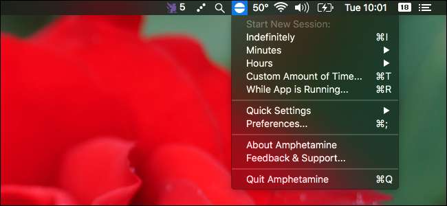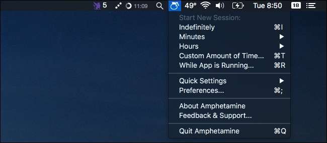 Téléchargez, installez et lancez Ampetamine comme vous le feriez pour n'importe quelle autre application Mac. Lorsque vous le faites, et vous verrez une nouvelle icône dans la barre de menu qui ressemble à une pilule. (Vous pouvez personnaliser cette icône, mais nous y reviendrons dans un instant.)