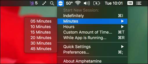 Cliquez sur cette icône et vous pourrez rapidement faire basculer votre Mac pour rester éveillé «indéfiniment». Vous pouvez également garder votre Mac éveillé pendant un certain nombre de minutes…