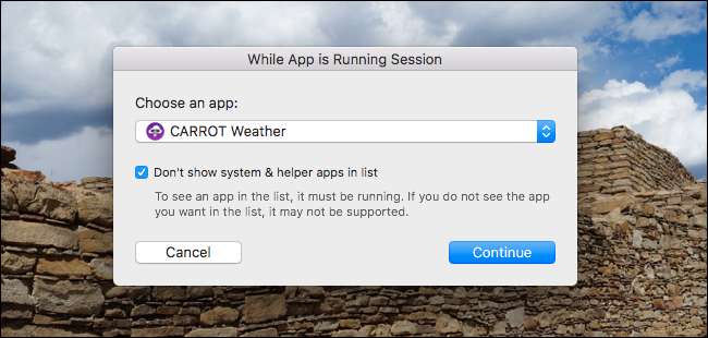 Si cela ne vous suffit pas, vous pouvez également garder votre Mac éveillé pendant qu’un certain programme est en cours d’exécution. Pourquoi voudriez-vous cela? Vous avez peut-être configuré votre gestionnaire de téléchargement pour qu'il se ferme une fois le téléchargement terminé, et vous voulez vous assurer que votre Mac continue de fonctionner jusqu'à ce que cela soit fait. Si vous ne pouvez pas vous imaginer utiliser cette fonctionnalité, respectez simplement les options chronométrées.