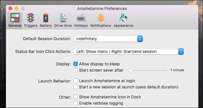 Si vous êtes le genre d’utilisateur qui aime tout configurer pour que tout soit parfait, vous allez adorer le panneau de paramètres proposé par Amphetamine. Cliquez sur l'icône de la barre de menu et allez dans "Préférences" pour ajuster le contenu de votre cœur.