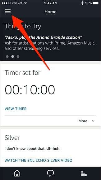 Commencez par ouvrir l'application Alexa sur votre téléphone et appuyez sur le bouton de menu dans le coin supérieur gauche de l'écran.