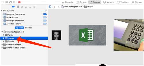 Si vous êtes à la recherche d'images ou d'autres éléments multimédias à partir de la page Web, Safari, il est facile de trouver ces. Dans le volet gauche, vous verrez différents dossiers tels que les images, les polices de caractères, etc. Cliquez sur le dossier « Images » pour trouver rapidement les photos que vous avez besoin.