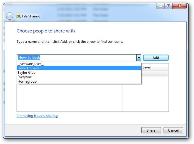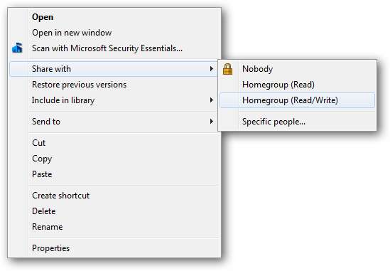 Windows 7 a acheté une nouvelle technique de partage «facile». Les options sont passées de Lire, Modifier et Contrôle total à. Lire et lire / écrire. L'idée faisait partie de la mentalité du groupe d'accueil et permet de partager facilement un dossier pour les personnes non informatisées. Cela se fait via le menu contextuel et partage facilement avec votre groupe d'appartenance.