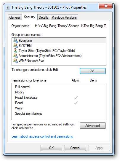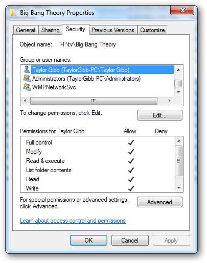 Les autorisations NTFS pour les dossiers ont des options légèrement différentes, jetons-y un coup d'œil.