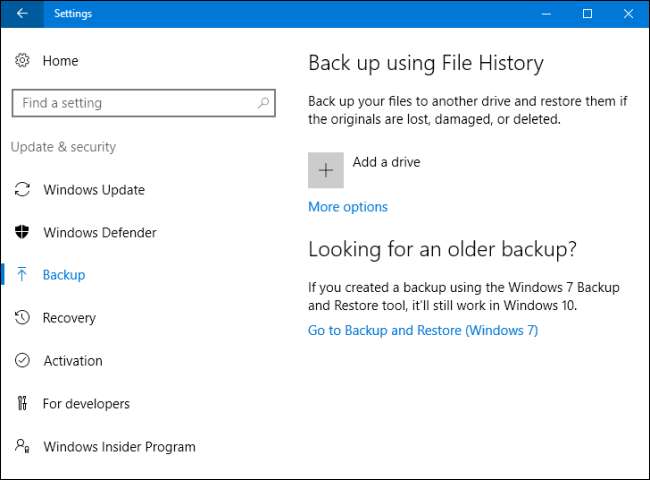 Microsoft a également conservé l'ancien Fonction de sauvegarde et de restauration de Windows 7 autour. Il était disponible dans Windows 8, supprimé dans Windows 8.1 et est de retour dans Windows 10. L'outil de sauvegarde et de restauration (Windows 7) vous permet de restaurer n'importe laquelle de vos anciennes sauvegardes Windows 7 sur votre ordinateur Windows 10 - probablement pourquoi l'outil est toujours là - mais vous pouvez également l'utiliser pour sauvegarder votre PC Windows 10 de la même manière que vous sauvegarderiez un PC Windows 7.