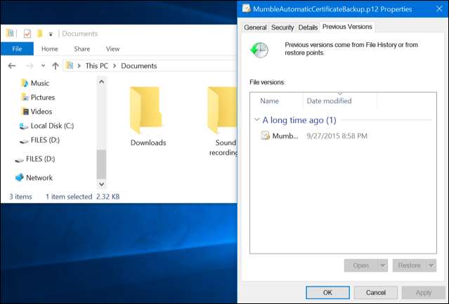 Ou vous pouvez restaurer les versions précédentes des fichiers directement dans l'Explorateur de fichiers.
