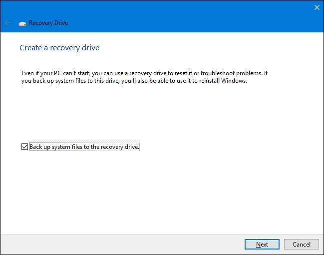 Tout ce que vous avez à faire dans l’assistant «Disque de récupération» est de choisir un lecteur (CD / DVD sous Windows 7, USB sous Windows 8 ou 10) et laissez-le faire la copie.