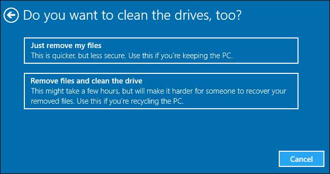 Si vous supprimez tout, vous pouvez également dire à Windows de effacez le lecteur en toute sécurité — Ce que vous devez faire avant de vous débarrasser d'un PC Windows 10 ou de tout autre appareil.
