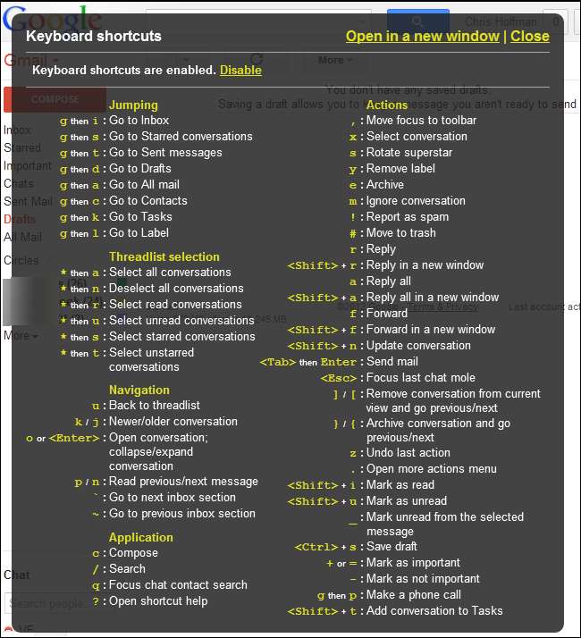 presse Décalage – ? pour afficher la feuille de triche intégrée après avoir activé les raccourcis clavier. Vous pouvez également consulter Google liste des raccourcis clavier Gmail .