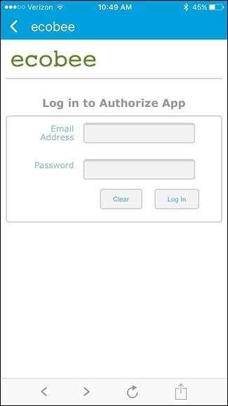 Tapez les informations de votre compte Ecobee, puis appuyez sur «Connexion».