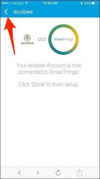 Placez une coche à côté de votre thermostat intelligent, puis appuyez sur «Terminé».