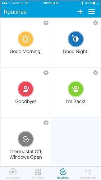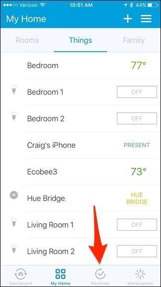 Après avoir lié votre thermostat intelligent à SmartThings, appuyez sur l'onglet «Routines» en bas.
