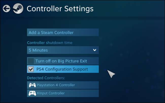 Dirigez-vous vers Paramètres> Paramètres du contrôleur en mode Big Picture et activez l'option «Prise en charge de la configuration PS4».