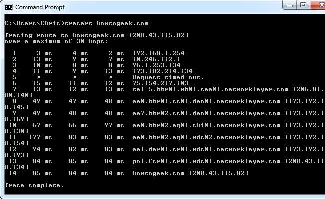 (Sur Mac ou Linux, exécutez traceroute howtogeek.com au lieu.)