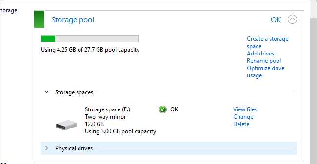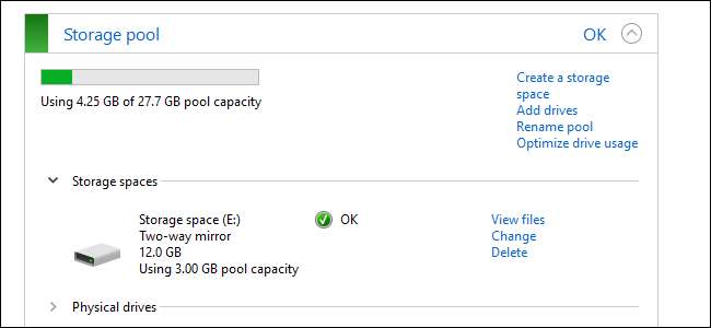 Après avoir créé un espace de stockage, vous pouvez revenir au volet Espaces de stockage du Panneau de configuration pour le gérer.