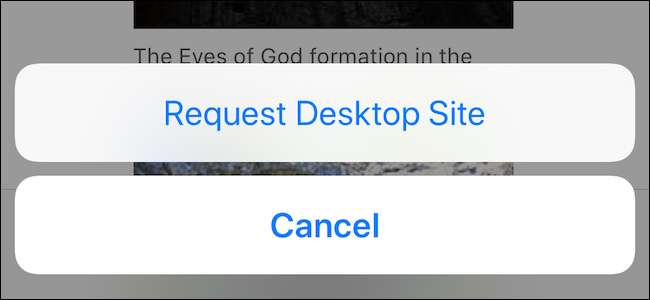 Appuyez sur l'icône «Aa» pour voir quelques nouvelles options de menu. De là, sélectionnez le bouton «Demander le site Web de bureau» pour ouvrir la version de bureau du site Web.