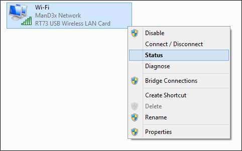 Vous verrez maintenant tous les adaptateurs réseau de votre appareil, cliquez avec le bouton droit sur celui sans fil et sélectionnez État dans le menu contextuel.