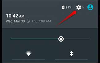 La première chose à faire est de vous rendre dans le menu Paramètres. Sur la plupart des nouveaux combinés, vous pouvez le faire en faisant glisser la nuance de notification vers le bas et en appuyant sur la petite icône en forme de rouage en haut à droite. Sur les appareils Android en stock, vous devrez baisser le store deux fois: une fois pour accéder au panneau de notification, puis de nouveau pour afficher la zone Paramètres rapides.