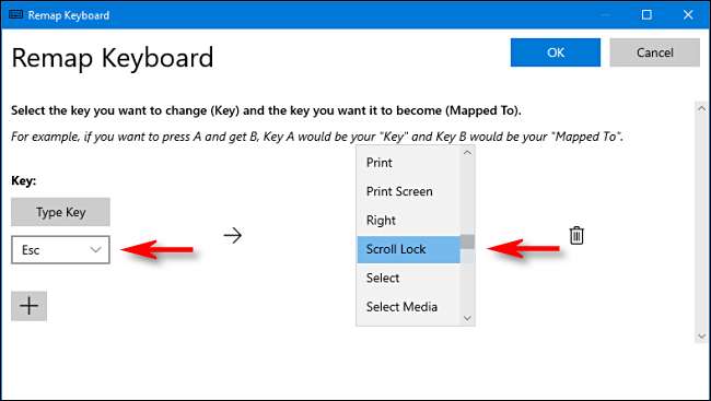 Nous utiliserons Echap comme clé cassée dans notre exemple et le remplacerons par Touche de verrouillage de défilement rarement utilisée .