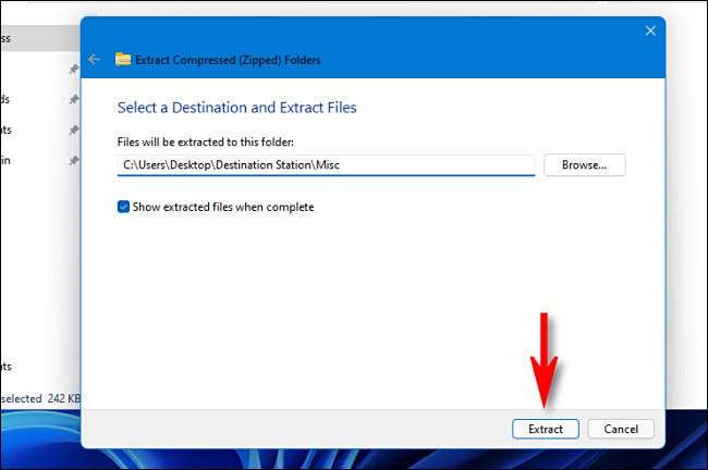 Si vous souhaitez voir les fichiers extraits dans l'explorateur de fichiers lorsque le processus se termine, cochez la case à côté de "Afficher les fichiers extraits lors de la fin." Lorsque vous avez terminé avec ces options, cliquez sur "Extraire".