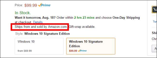 Vous pouvez également choisir de rechercher des produits vendus par Amazon lui-même, même si Amazon ne facilite pas les choses.