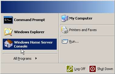 Depuis le menu Démarrer, ouvrez la console Windows Home Server