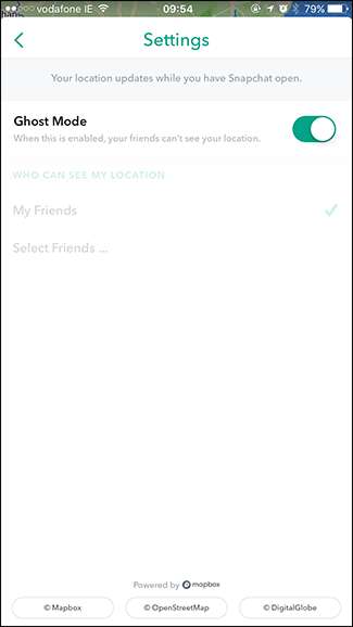 Appuyez sur le commutateur à côté de Mode fantôme pour désactiver le partage de position. Vous pourrez toujours voir la position de tous vos amis, ce qui est vraiment étrange, mais au moins vous ne leur diffuserez pas votre position.