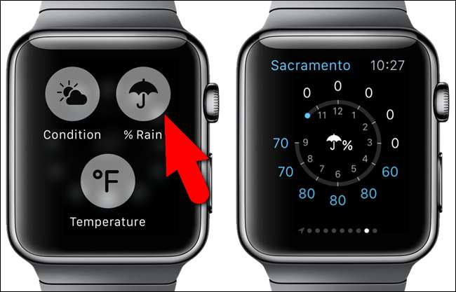 Lorsque vous ouvrez l'application «Météo» sur votre Apple Watch, elle affiche les conditions météorologiques par défaut. Cependant, vous pouvez utiliser Force Touch pour changer la vue.