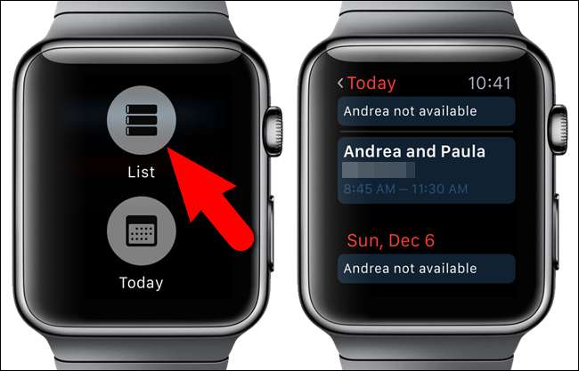 REMARQUE: appuyez sur le lien «Aujourd'hui» dans le coin supérieur gauche de l'écran de la montre pour voir le mois entier en un coup d'œil. Appuyez sur le calendrier mensuel pour revenir à la vue «Aujourd'hui» («Jour» ou «Liste», selon le dernier format affiché).