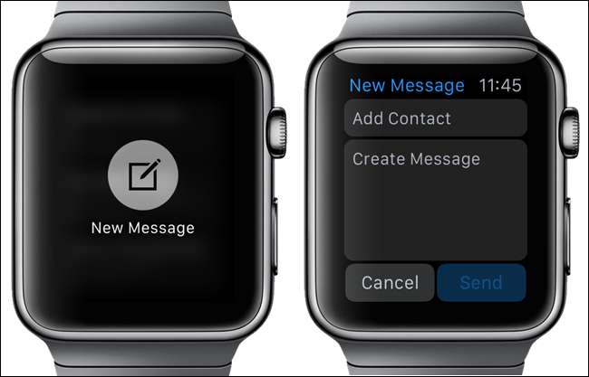 Une fonctionnalité intéressante de l'Apple Watch est la possibilité de créer et d'envoyer un message texte à l'aide de la montre. Il est toujours livré via votre iPhone, mais vous n'êtes pas obligé de retirer le téléphone pour le créer. Utilisez simplement Force Touch dans l'application «Messages» pour créer un nouveau message.
