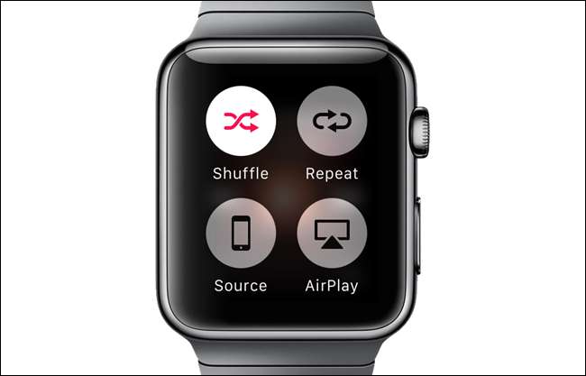 Les options «Aléatoire», «Répéter» et « AirPlay »Options s'affichent. Vous pouvez également changer la «Source» de la musique à partir de cet écran.
