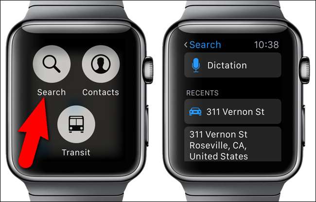 Vous pouvez utiliser votre Apple Watch pour rechercher des emplacements dans l'application «Cartes», plutôt que de sortir votre téléphone, à l'aide de Force Touch. Lorsque vous ouvrez l'application «Cartes», votre position actuelle s'affiche. Appuyez fermement sur l'écran de la montre.